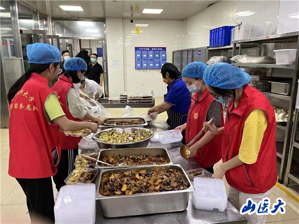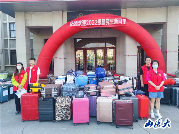 与她们一样,中都、迎泽两校区的410名志愿者们在那一天,怀揣着对志愿者使命的共同追求,坚定地投入到这场并不简单的迎新活动中去。他们来自不同专业、不同年级,根据需要分成了行李转运组、就餐保障组和核酸检测组。在迎接新生的两天内,从早上七点到晚上十点,他们承担起查验防疫健康码,协助核酸采样、帮助新生搬运行李和协助食堂工作人员静默管理期间盒饭打包等多项工作。