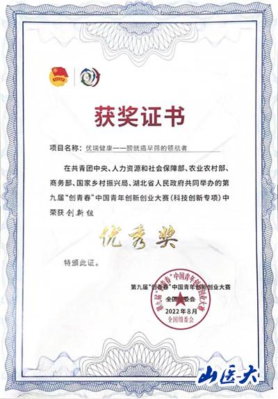 第九届“创青春”中国青年创新创业大赛开展以来,学校高度重视、精心组织、认真部署,广泛动员全校师生积极参与。经大赛全国组委会评审、审核确认后,我校2项作品从全国众多高质量参赛作品中脱颖而出。其中,数字经济专项赛道的《益生科技——开启创口智能止血监护的新时代》获得创新组铜奖,科技创新专项赛道的《优瑞健康——膀胱癌早筛的领航者》获得创新组优秀奖。