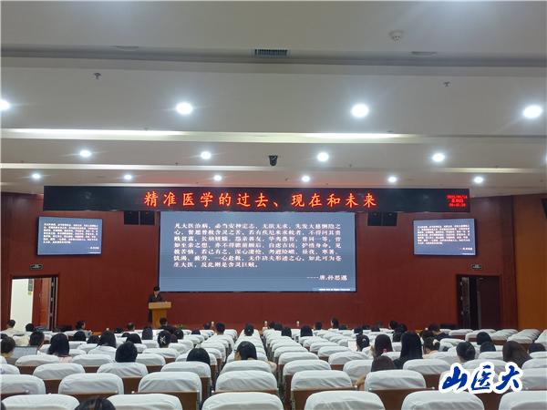 尹烨以“精准医学的过去、现在和未来”为题,展开叙述了精准医学的发展历程、核心以及未来趋势。尹烨介绍了近年来华大集团在精准医学及大数据整合方面的突出成果;分享了利用基因诊断有效分析基因或染色体异常以实现对其监测与预防,成功辅助、指导临床个性化治疗;分析了打造拥有自主知识产权的基因测序仪的重要性及必要性;展望了未来精准医学的需求将会持续增加,基因检测有望在临床方面有更快速的推广和普及。报告深入浅出、视野宽阔,为我校师生送上了一场学术盛宴。随后,尹烨与参会的师生代表进行了交流互动。