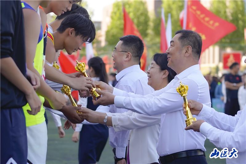 本届运动会,师生医护员工以良好的赛风赛纪和文明礼仪,赛出了风格、赛出了友谊、赛出了水平,展现了青春风貌,弘扬了校风、校训和山医精神,汇聚了发展合力,激励全校师生医护员工以更加饱满的精神状态、更加昂扬的奋斗姿态,高举旗帜,守正创新,开拓进取,追求卓越,为不断加快全国一流研究应用型医科大学建设步伐作出新的更大的贡献!