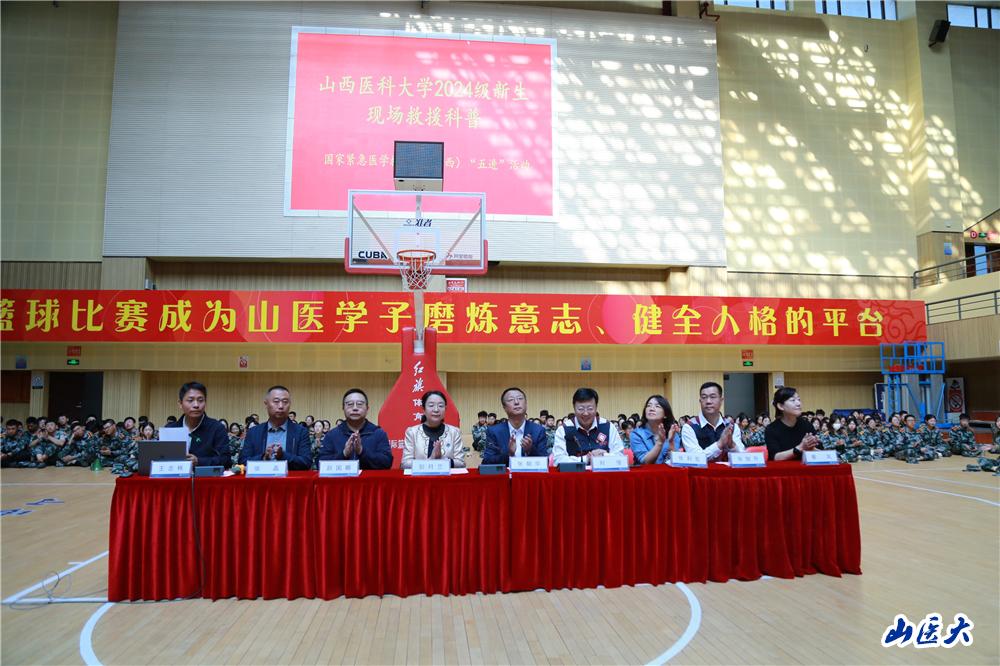 为了普及全民急救自救常识,提高师生的紧急救援能力,合力打造健康中国、平安校园。9月24日上午,学校特邀附属第三医院的国家紧急医学救援(山西)队来中都校区为军训期间的2024级新生开展应急安全知识“五进”活动。校党委副书记彭月兰、山西省卫生健康委员会应急办主任张朝华、附属第三医院副院长刘俊出席。武装保卫部、学生工作部、团委、体育教学部等部门负责人参加了启动仪式。