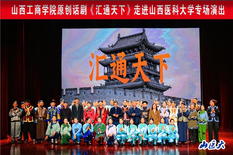 10月26日晚,山西工商学院原创话剧《汇通天下》在我大学生剧场演出。校党委副书记彭月兰,山西工商学院党委副书记李天怀,省文化厅编辑部主任、原创话剧《汇通天下》编剧王辉等出席活动。我校和山西工商学院相关部门负责人、师生代表等共600余人现场观看了演出。