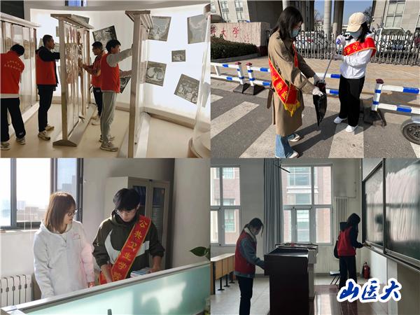 学校志愿者服务总队和第一临床医学院、公共卫生学院、药学院、医学影像学院、儿科医学系、人文社会科学学院等院系积极组织志愿者在校内开展志愿服务活动 ,志愿者们走进校园、教室、图书馆、生命科学馆等场所和公共区域,充分发扬公而忘私、乐于助人、不怕脏、不怕累,从小事做起,从“我”做起的雷锋精神,积极参与,团结协作,开展了校园、教室、展厅等场所的卫生清洁和图书馆图书清点整理等志愿服务工作,校园各个角落、每一间教室,每一个楼层,志愿者们奉献的身影无处不在。在志愿者们的努力下,校园变得干净优美,教室变得整洁明亮,图书馆、生命科学馆展厅变得一尘不染,志愿者们为广大师生营造出良好的学习工作氛围,用实际行动将雷锋精神传递给身边的每一个人。