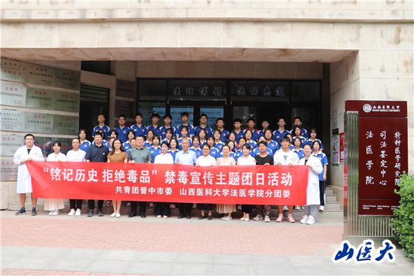 在第36个国际禁毒日来临之际,共青团晋中市委、榆次区团委和我校法医学院分团委联合开展了“铭记历史 拒绝毒品”禁毒宣传主题团日活动。