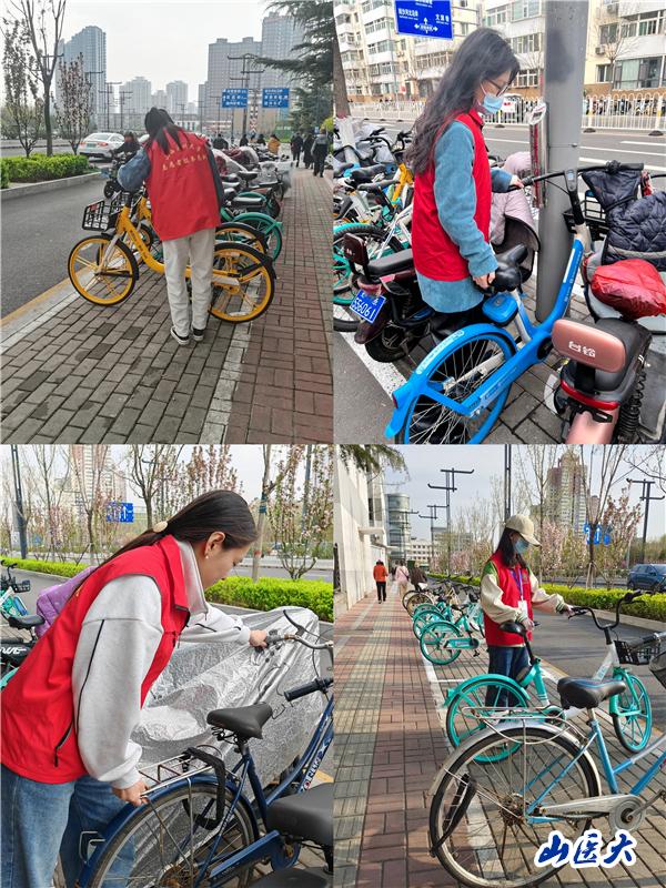 志愿者们还开展了“摆放共享单车 倡导文明骑行”的志愿服务活动。将校园周边沿街乱停乱放的共享单车进行统一规范整理,将倒在路旁的共享单车集中搬至规定的区域内停放,并对车内的残留垃圾进行清理,把周边的共享单车摆放整齐。同时引导过往居民,自觉维护、爱护身边的共享单车,做文明的骑行者、停放者、宣传者。