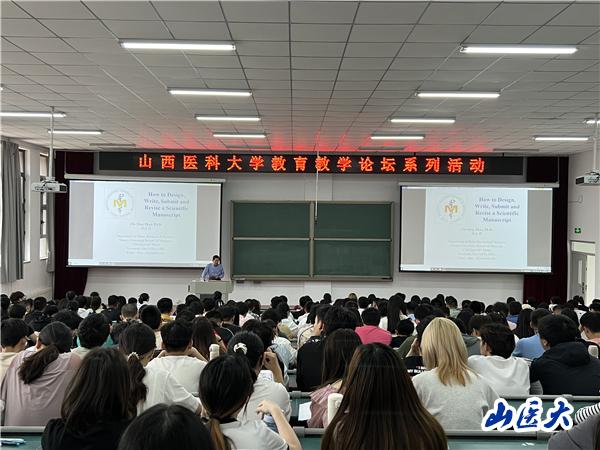 赵志青以《研究论文的写作,投稿,修改和发表》为题,围绕SCI收录期刊的科研论文的整体要求及注意事项,从论文选题、结果整理、图表绘制、论文书写、论文投稿及论文修改等方面一一进行了详细介绍,激发了大学生科研兴趣,拓宽了学术视野,提高了学术素养,为大学生进行科研论文撰写提供了新线索、新思路、新方法。他还通过分享自身的海外求学经历、科研经历及对高等医学教育体制规律的认识,勉励在座大学生积极投身科研事业。讲座现场气氛热烈,掌声经久不息。