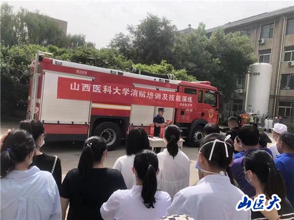 随着警铃响起,伴着滚滚浓烟,所有学生从公卫楼有序跑出,学校应急队及时赶赴火场,开展火情勘测及人员疏散……5月25日上午,我校迎泽校区按照预案联合属地消防队开展了一场消防逃生演练及技能培训。