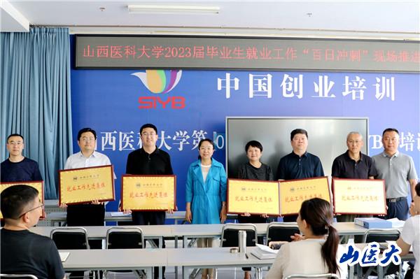 彭月兰和学生工作部部长张晶为2022-2023年五四表彰中获得就业先进集体的第一临床医学院、第三临床医学院、第五临床医学院、第六临床医学院、法医学院、儿科医学系等六个院系颁奖。