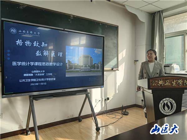 11月3日下午,我校“德医相融工作坊系列活动——课程思政专项第十三期”在迎泽校区公共卫生学院三层会议室顺利举办。本期活动由我校社会医学课程负责人贺鹭和医学统计学课程团队核心成员房瑞玲分享交流,活动采用线下展示交流、线上同步直播的形式,教务部、马克思主义学院、公共卫生学院核心课程负责人及专任教师参加线下活动,线上600余人观摩同步直播。