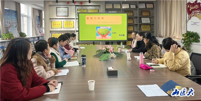 11月19日下午,学校在迎泽校区举行了2024年第四期辅导员沙龙活动。山西省心理咨询协会副会长、国家二级心理咨询师李如霞老师应邀以“接纳与包容——构建良好的师生关系”为主题进行培训交流。沙龙由学生工作部主办,明德润心坊辅导员工作室承办,学生工作部副部长杨洋主持。
