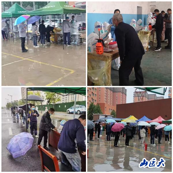 十一期间,太原市气温骤降,一连几天小雨和大雨交替出现,给抗疫工作带来了诸多不便。然而,第一医院的护理人员并未停下雨中抗疫的脚步,她们天蒙蒙亮就赶到指定地点,迅速与各社区联系,筹备防护物资,召集志愿者,投入工作。