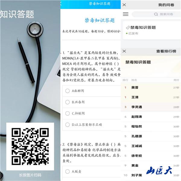 开展一次禁毒知识答题活动。活动以线上问卷形式开展,精选应知应会知识点,答题完毕立即显示分数,及时纠正错误认知,进一步提高同学们禁毒知识知晓率,增强了禁毒意识和法治观念。