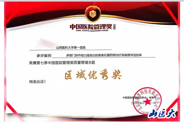 11月11日,第七季中国医院管理奖颁奖典礼在海南国际会展中心举行,第一医院医学检验科案例“多部门协作助力提高住院患者抗菌药物治疗前病原学送检率”荣获质量管理组华北区域优秀奖。