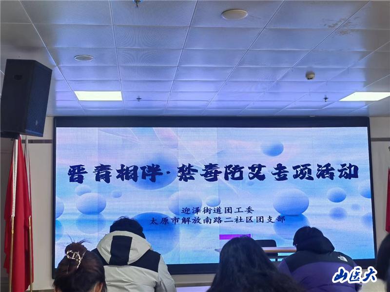 禁毒防艾践初心。为提高广大居民群众的拒毒防毒意识,社区联合志愿者举办了“晋青相伴·禁毒防艾专项活动”,讲解员生动讲述了毒品的危害,同时为居民展示部分毒品样本,在宣传禁毒的同时,提高居民对于毒品的辨识度。志愿者们维持讲座秩序,学习禁毒知识,为维护和谐稳定的社会环境贡献青春力量。