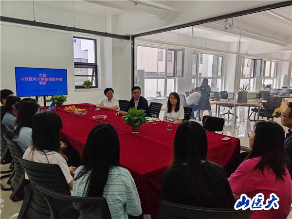 为加强与教学基地交流,推动落实双导师制与产教融合,深入了解生物制药专业学生实习情况,5月19日,基础医学院副院长刘继斌、生物制药专业负责人孙要军、生物制药教研室教师一行5人赴教学基地山西远扬生物技术有限公司进行调研,远扬公司董事长尹航、毕业实习指导负责人张浩磊公司位于晋中开发区大学城产业园区山西智慧科技城C区。尹航带领调研小组参观了公司生产线、学生实习环境、无菌车间等硬件设施召开了座谈会。他指出,实习生来公司后首先要熟悉生产规章制度、掌握实习安全知识,在了解公司基本情况后,由尹航与张浩磊老师共同指导,以实际生产所需为导向,开展毕业实习并确定论文题目方向,在学生实践的同时,查阅相关资料文献后进行毕业论文的撰写。在培养初期,可选派实习生前往企业进行短期实训,提前了解企业生产实习内容,明确学习任务,规划自身发展。