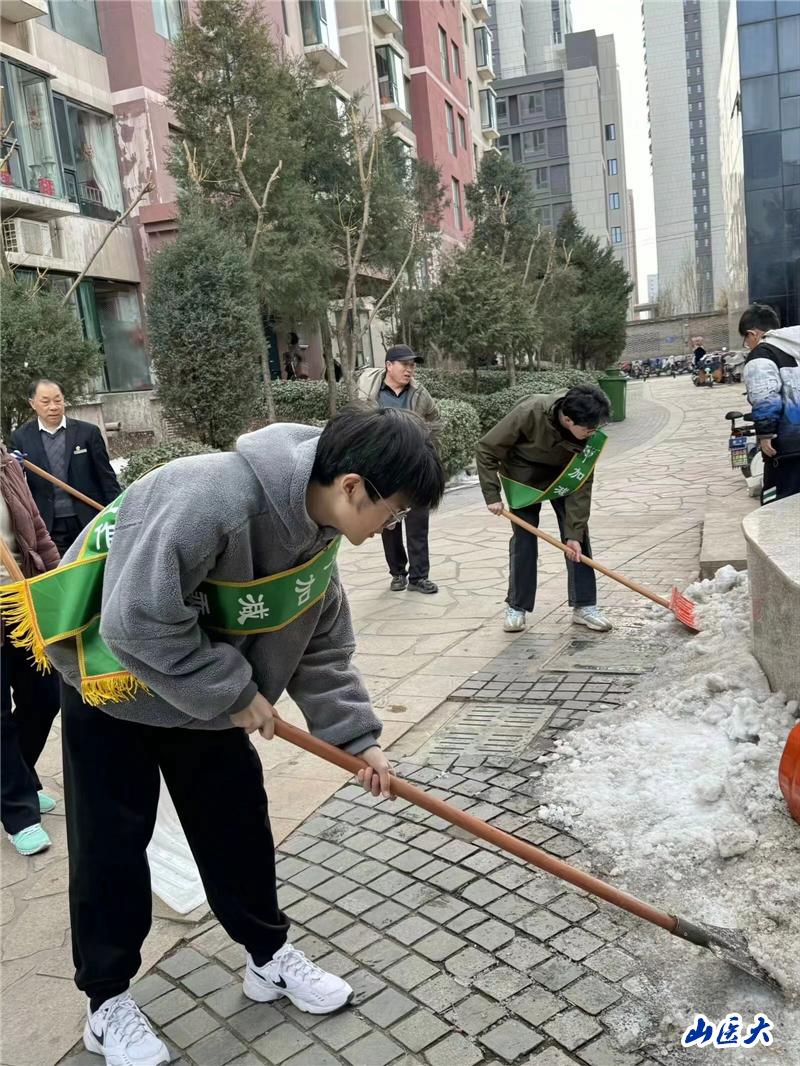 加减乘除文化传承工作坊的志愿者们一起清扫居民楼内道路积雪,清整卫生死角,清理小广告,擦拭宣传栏和橱窗,并将居民未停放整齐的非机动车搬至停车线内,以实际行动践行雷锋精神,用辛勤劳动扮靓美丽家园。